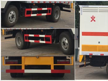 | 其他 | 该车适用于运输危险品。厢体顶部封闭,不可开启。该车用于运输独立容器包装的易燃气体:液化石油气,原油气,压缩天然气,乙炔,甲烷,乙烷,丙烷,丁烷,丙烯,丁烯,二甲醚,硫化氢,打火机或打火机加油器(装有易燃气体),压缩氢,类项号:2.1;运输具有独立容器包装的非易燃气体:液化气体(非易燃,充有氮,二氧化碳或空气),压缩氧(氮,空气,氦,氩,氖),二氧化碳,类项号2.2。防护材料:Q23碳钢,连接方式:左右侧面及后下部防护均采用焊接连接,后部防护断面尺寸(mm):100×50,后部防护离地高度(mm) | ||
