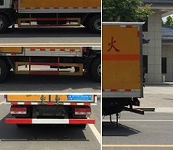 | 其他 | 该车适用于运输危险品。厢体顶部封闭,不可开启。选装右侧箱体不开门,选装侧门型式及位置,随底盘选装驾驶室。选装厢体内部结构。仅采用底盘子午线轮胎和带ABS的底盘,该车前轮安装盘式制动器,前置排气管,装配限速装置限速80km/h。安装带有卫星定位功能的行驶记录仪。安全装置为导静电带,用于防止静电。该车运输具有独立容器(瓶)包装的易燃气体:液化石油气、压缩天然气、乙炔、乙烷、丙烷、丁烷、异丁烷、丁烯、甲烷、丙烯、环丁烷、丙二烯、甲乙醚、打火机或打火机加油器(装有易燃气体)、氢。运送危险品类项号为2.1。侧防护和后防护装置材料材质为Q23碳钢,侧防护与厢体底部焊接连接,后防护装置与车架采用焊接连接。后防护截面尺寸(mm):100×50,离地高度为440mm。仅采用发动机型号4B2-115C50对应油耗值分别为油耗 (L/100km):12.61。ABS系统控制器型号是CM4XL-4S/4M,ABS系统控制器生产企业是广州科密汽车电子控制技术股份有限公司. | ||