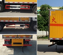 | 其他 | 该车用于危险品运输为危险货物运输车。选装右侧箱体不开门,厢体顶部封闭,不可开启。选装侧门型式及位置。该车主要用于运输独立容器(瓶)包装的介质:粘合剂,涂料,料溶液, 油漆,煤油,机油,苯,甲醇,乙醇,丙酮,甲苯,二甲苯,类项号: 3。安装限速装置,限速80km/h。该车安装带有卫星定位功能的行驶记录仪。安全装置为导静电带,用于防止静电。仅采用前盘制动器和安装ABS的底盘。排气管前置。仅采用子午线轮胎。侧防护和后防护装置材料材质为Q23碳钢,侧防护与箱体底部焊接连接,后防护装置与车架采用焊接连接。后防护截面尺寸(mm):110×50,离地高度为440mm。发动机4B2-95C50,WP2.1Q95E50,WP2.3Q110E50分别对应的油耗值为:12.0,12.0,12.01。ABS生产厂家/型号:上海万捷汽车控制系统有限公司/VIE ABS-II。 | ||