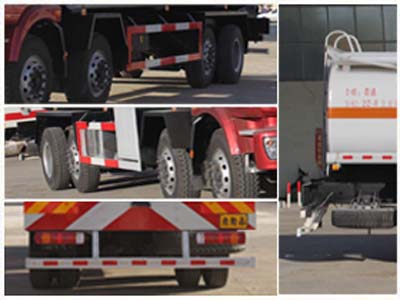 | 其他 | 1,该车适用于危险品运输,运输介质:柴油,汽油,煤油,介质密度分别为:0.83吨/立方米, 0.75吨/立方米, 0.80吨/立方米,类项号:3;罐体有效容积:22.3立方米, 罐体外形尺寸(长×长轴×短轴)(mm)为:9000×2370×1570。2,防护材料:Q23碳钢,连接方式:左右侧面及后部防护均采用焊接连接,后部防护断面尺寸(mm):120×50,后部防护离地高度(mm):450。3,仅采用底盘子午线轮胎和带ABS的底盘; 该车前轮安装盘式制动器,前置排气管,装配限速装置,限速79km/h。 | ||