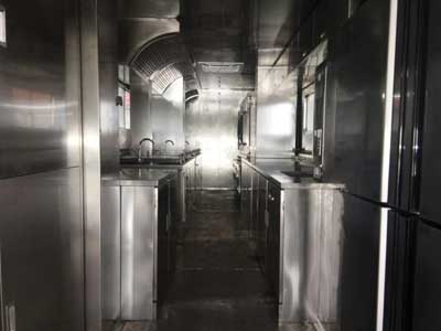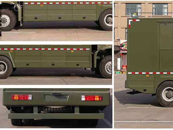 | 其他 | 顶部封闭不可开启;该车装备主食灶,炒菜灶,炖菜灶,调理台冰柜,抽油烟机,净水储水系统等作业设备,用于野外炊事作业;外形长/轴距/后悬对应关系为(mm):10142/5200+1400/1940,11192/5200+1400/2990,11692/5600+1400/3090,11992/5800+1400/3190;该车侧面为裙边结构,后部防护焊接连接,尺寸为(mm)120×50,侧面,后部离地480mm;ABS系统型号为4460046300,生产企业为威伯科汽车控制系统(中国)有限公司. | ||