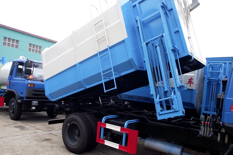 7、湖北程力新型自装卸式垃圾车运载量大,环保性强。载质量增加,且无污水外溢,不会污染道路,整个作业中杜了二次污染。低作业噪声。城市自装卸式垃圾运输车产品应通过液压系统和装载机构的优化设计,提高加工精度和装配质量,以达到减小车辆作业噪声的目的.